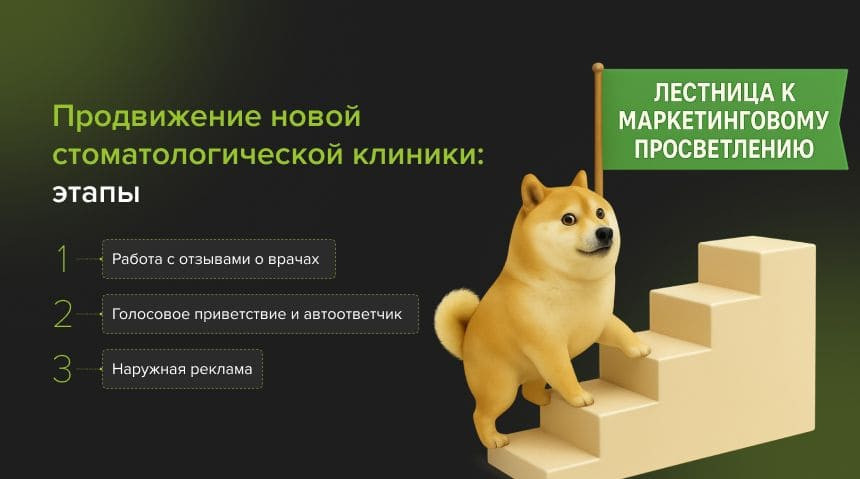 Рекламная стратегия стоматологической клиники должна идти параллельно с подготовкой к открытию. Пока идет ремонт — создается сайт, собирается семантика, формируется репутация врачей. Как только появляется адрес — регистрируйтесь в агрегаторах, запускайте наружку и прорабатывайте голосовое приветствие.